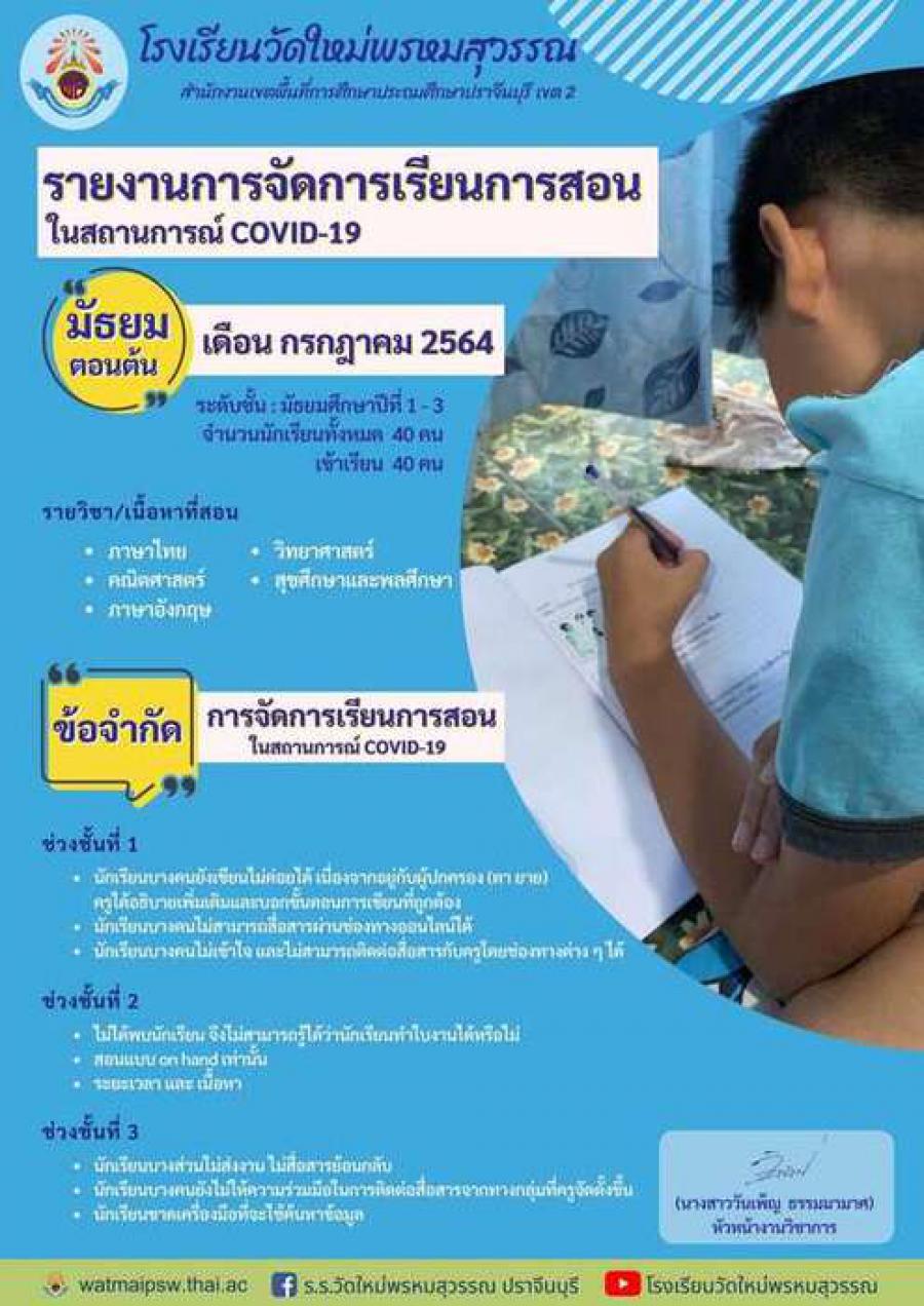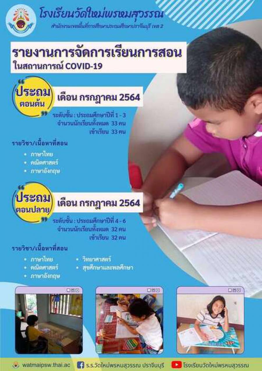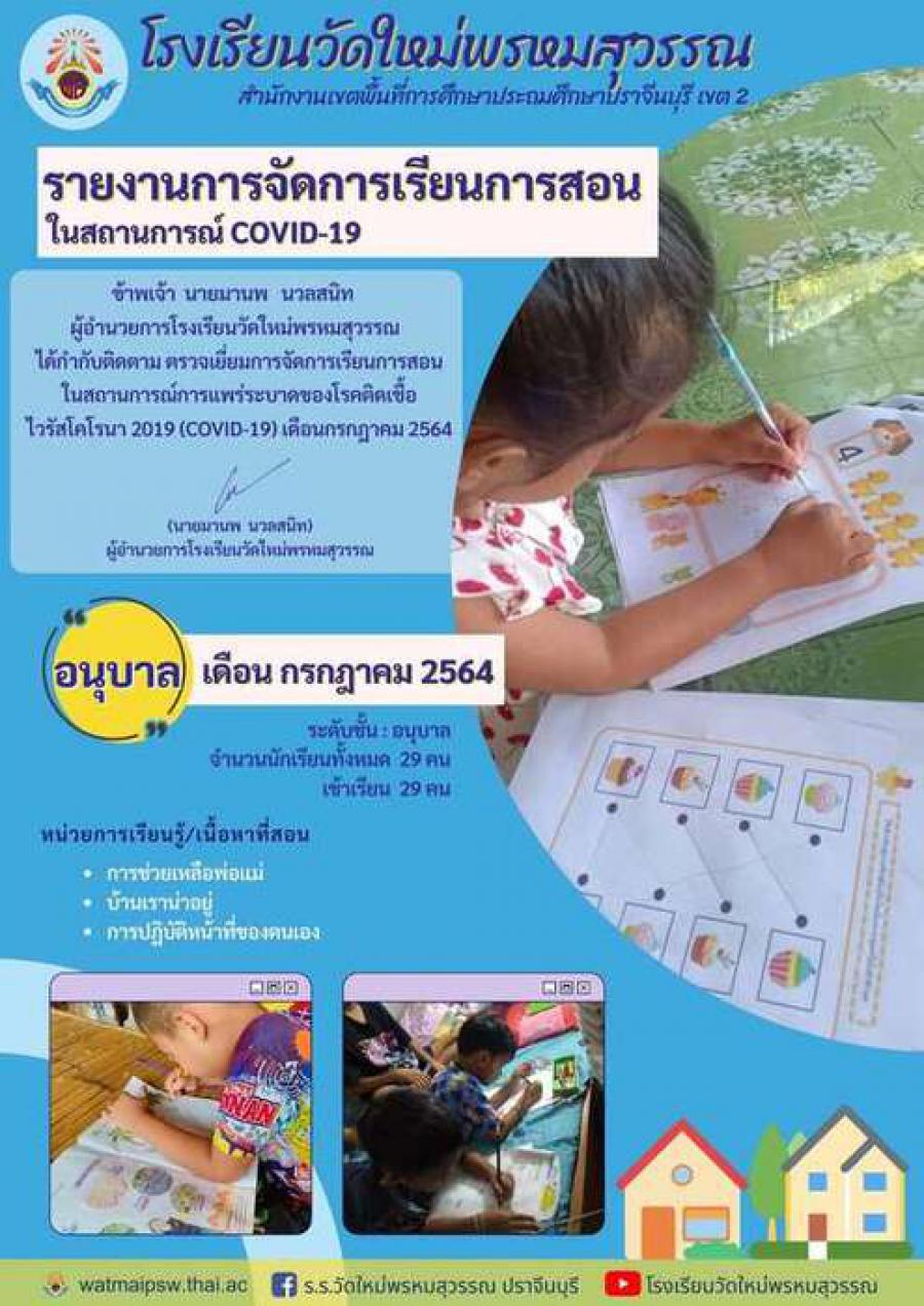 รายงานผลการจัดการเรียนการสอน (COVID-19) กรกฎาคม 2564