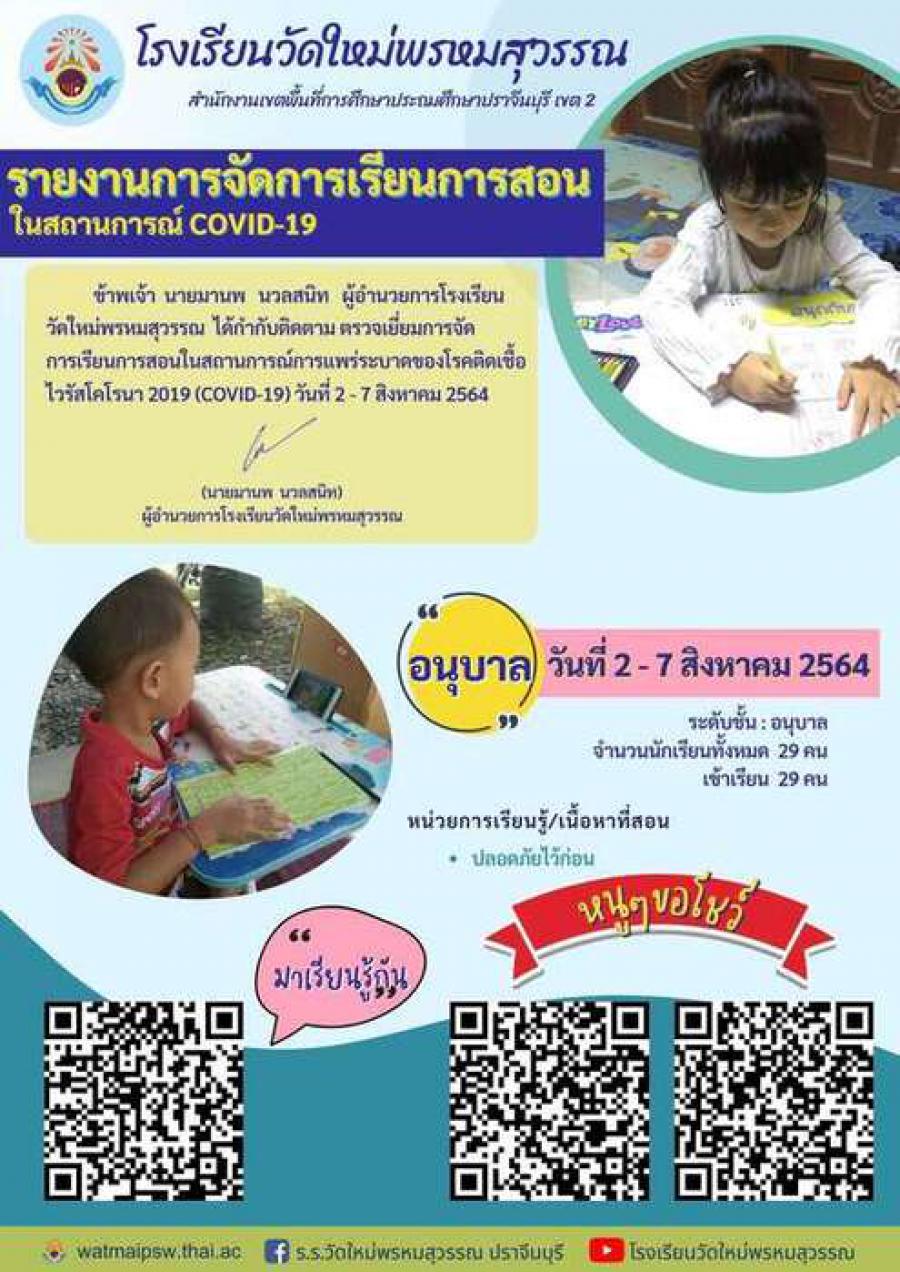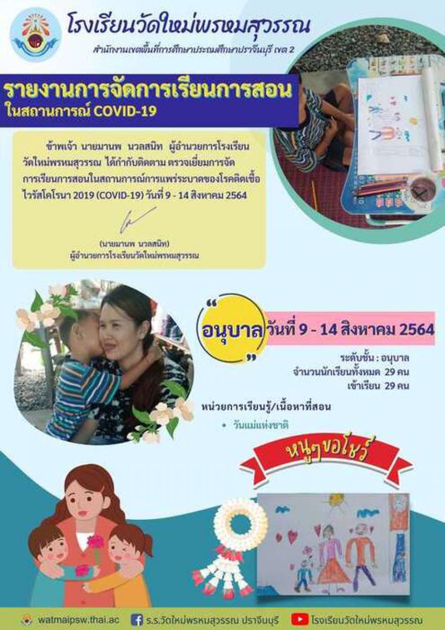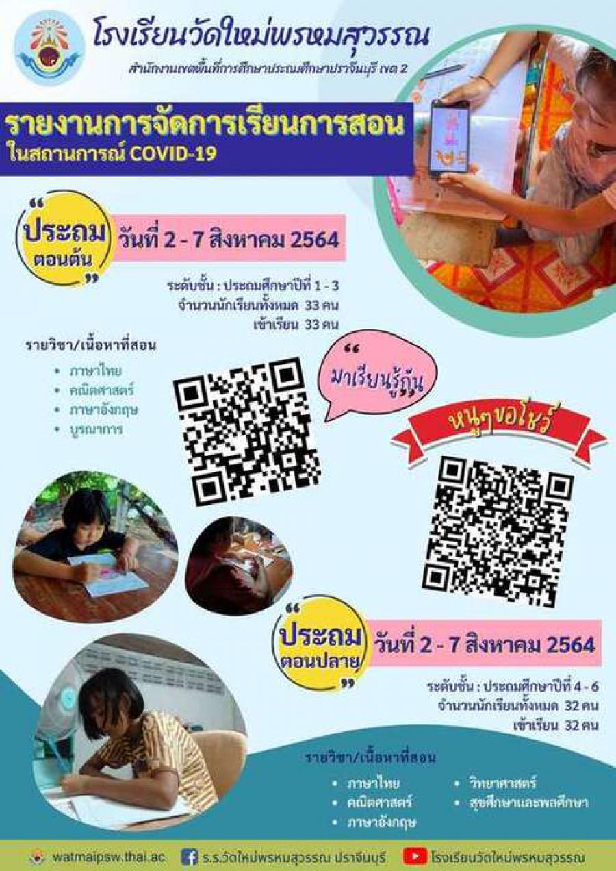 รายงานผลการจัดการเรียนการสอน (COVID-19) สิงหาคม 2564