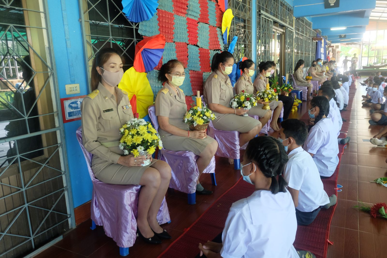 นายมานพ  นวลสนิท ผู้อำนวยการโรงเรียน คณะครู บุคลากร นักเรียนและศิษย์เก่า เข้าร่วมพิธีไหว้ครู ประจำปีการศึกษา 2563