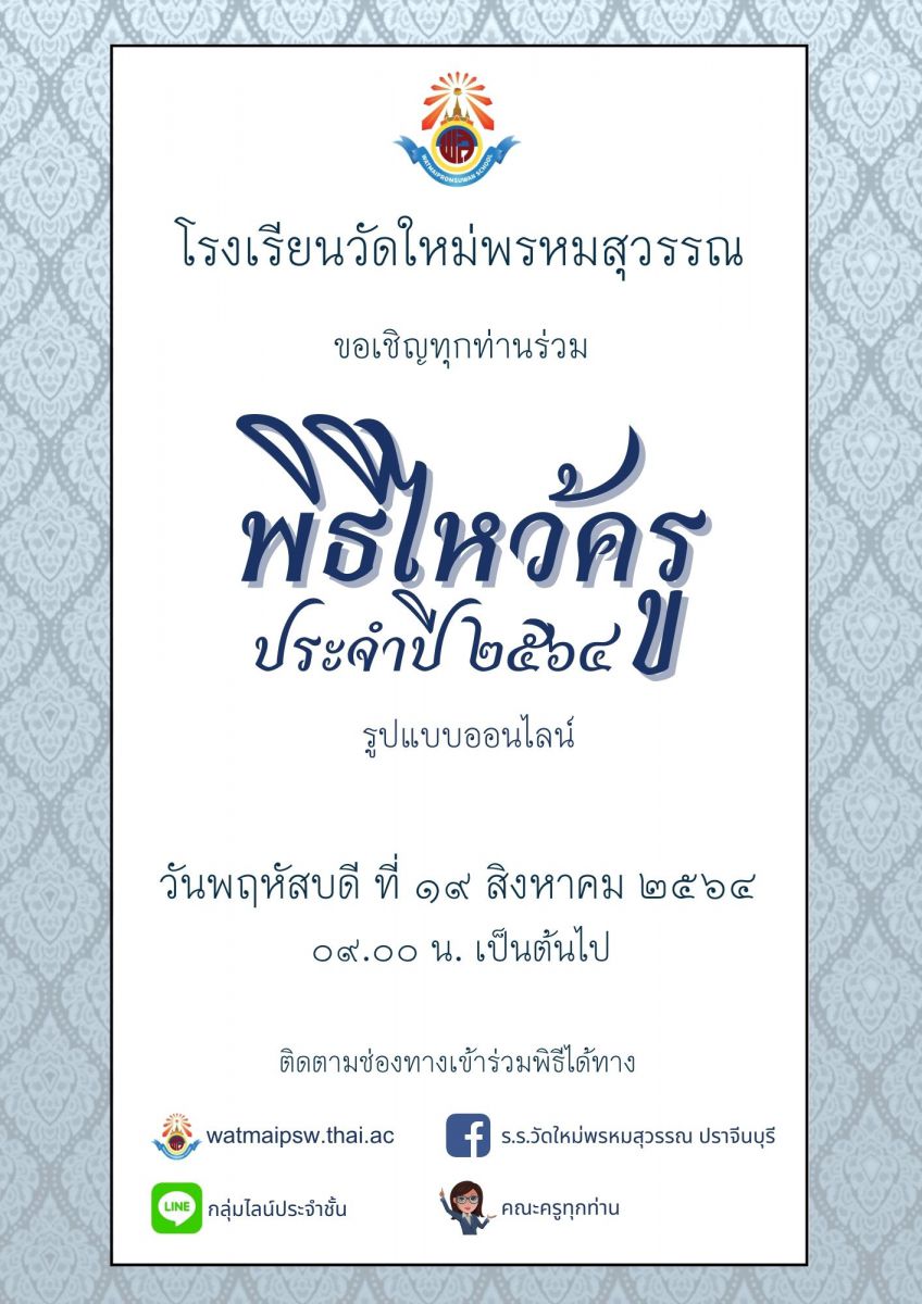 ขอเชิญร่วมพิธีไหว้ครู ประจำปี ๒๕๖๔